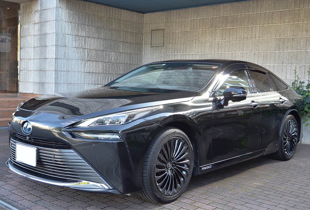 納車された車両はトヨタが2014年に販売した「MIRAI」の新型モデル。多種多様なエネルギー源から製造が可能な水素は「究極のクリーンエネルギー」と言われ、水素を燃料とする燃料電池自動車は走行中に二酸化炭素を排出しない「究極なエコカー」と呼ばれている。