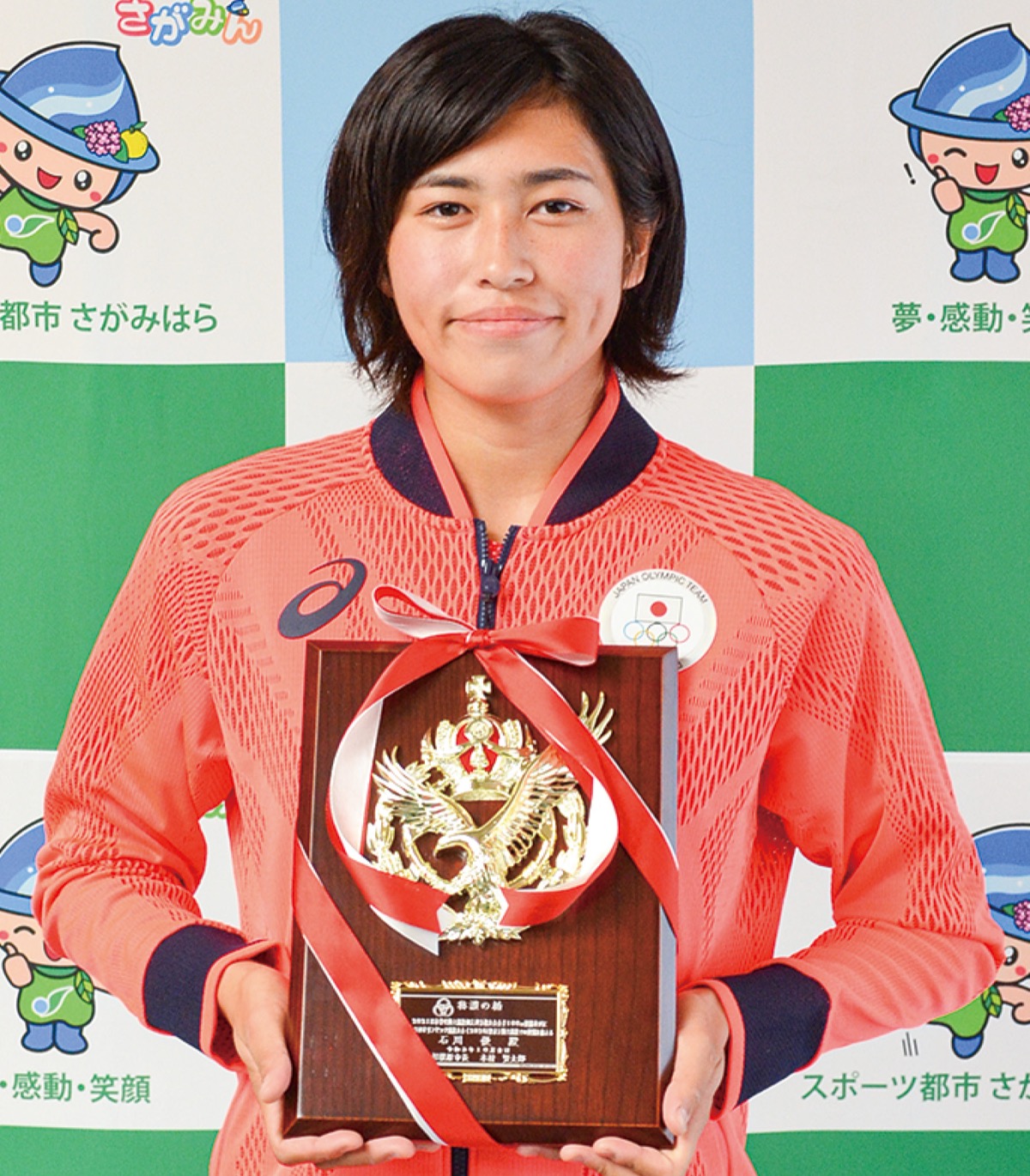 石川選手は伊勢原市出身。青山学院大学1年で陸上競技部短距離ブロックに所属している。今年6月に行われた日本学生陸上競技個人選手権大会の女子100mで自己ベストを達成し優勝したことと併せて、オリンピック代表選手に選ばれた活躍を称え、本村市長から称讃の楯が贈られた。