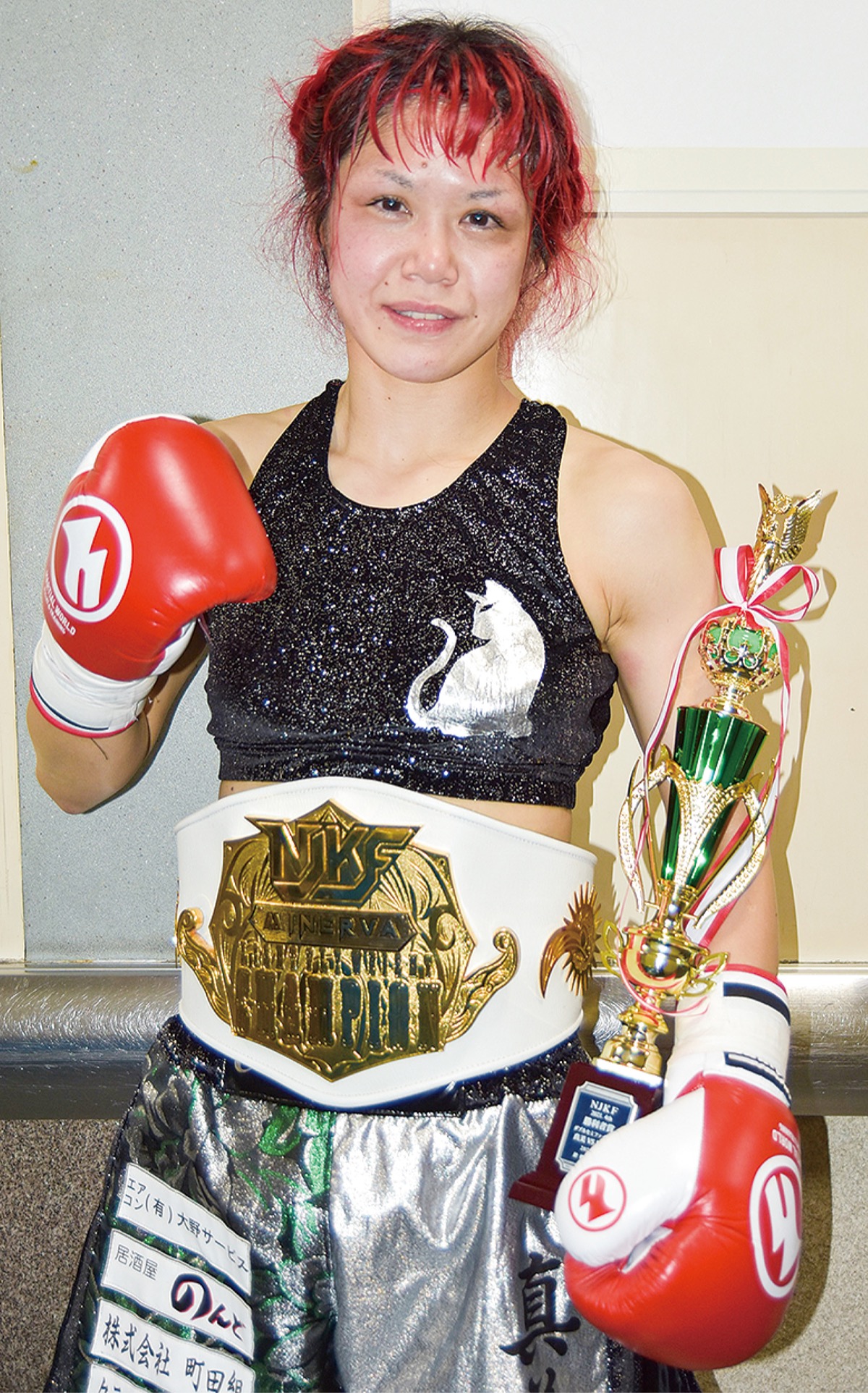 試合の結果は判定へ。ジャッジは3者ともヒット数で勝る真美選手を支持し、自身初となる王者に輝いた。