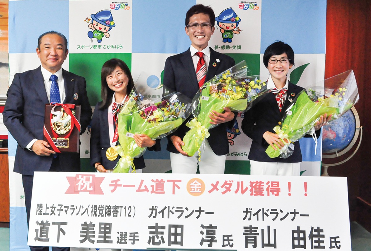 本村市長は道下選手が出場したレースがテレビ観戦した唯一の競技だったことを明かした上で、「共生社会の実現を掲げる相模原市として、皆さんの言葉に胸を打たれる」とし、「道下さんの頑張りによって自分も頑張ろうと思ってもらえるようになれば」と話し、活躍をねぎらった。