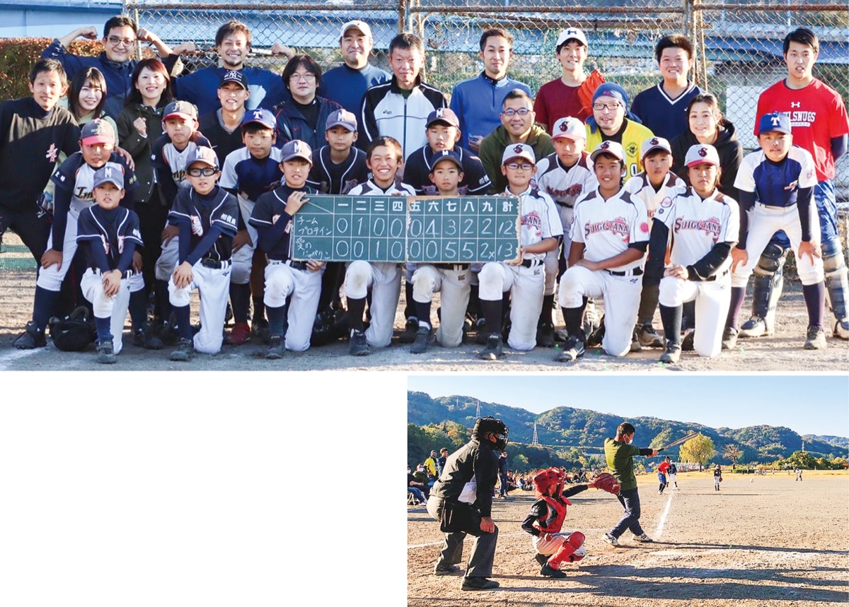 相模川そばの田名青少年広場で11月14日、田名地区の野球チームに所属する小学6年生の児童と、同地区在勤の教員が交流戦を行った。