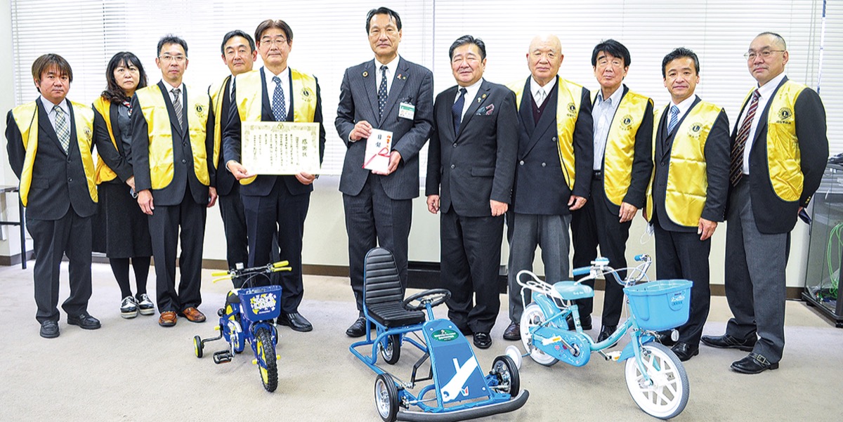 相模原中央ライオンズクラブ(以下LC)は7日、市役所を訪れ、鹿沼児童交通公園への物品の寄贈を行った。