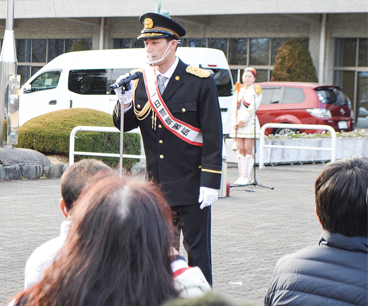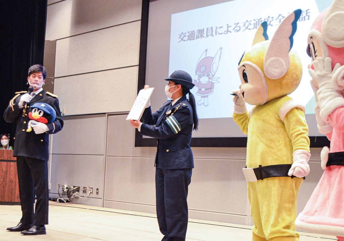 委嘱式などの会場となった産業会館には関係者のほか、塩見さんの出身校である星が丘小学校や中央中学校の児童生徒も参加した。制服に身を包んだ塩見さんは、盛大な拍手で出迎えられると少しだけはにかんだ表情を見せて登壇。寸劇形式で行われた模擬110番通報訓練には「署長」として加わり、ぶっつけ本番だったという犯人逮捕の場面では機転を利かせた演技も披露し、会場の笑いを誘った。署員から訓練の感想を求められると、「僕よりも機動力があって素晴らしかった。警察の皆さんが迅速に対応してくれているのがよくわかった。自分の野球にも生かしていきたい」と話し、大きな拍手が湧いた。