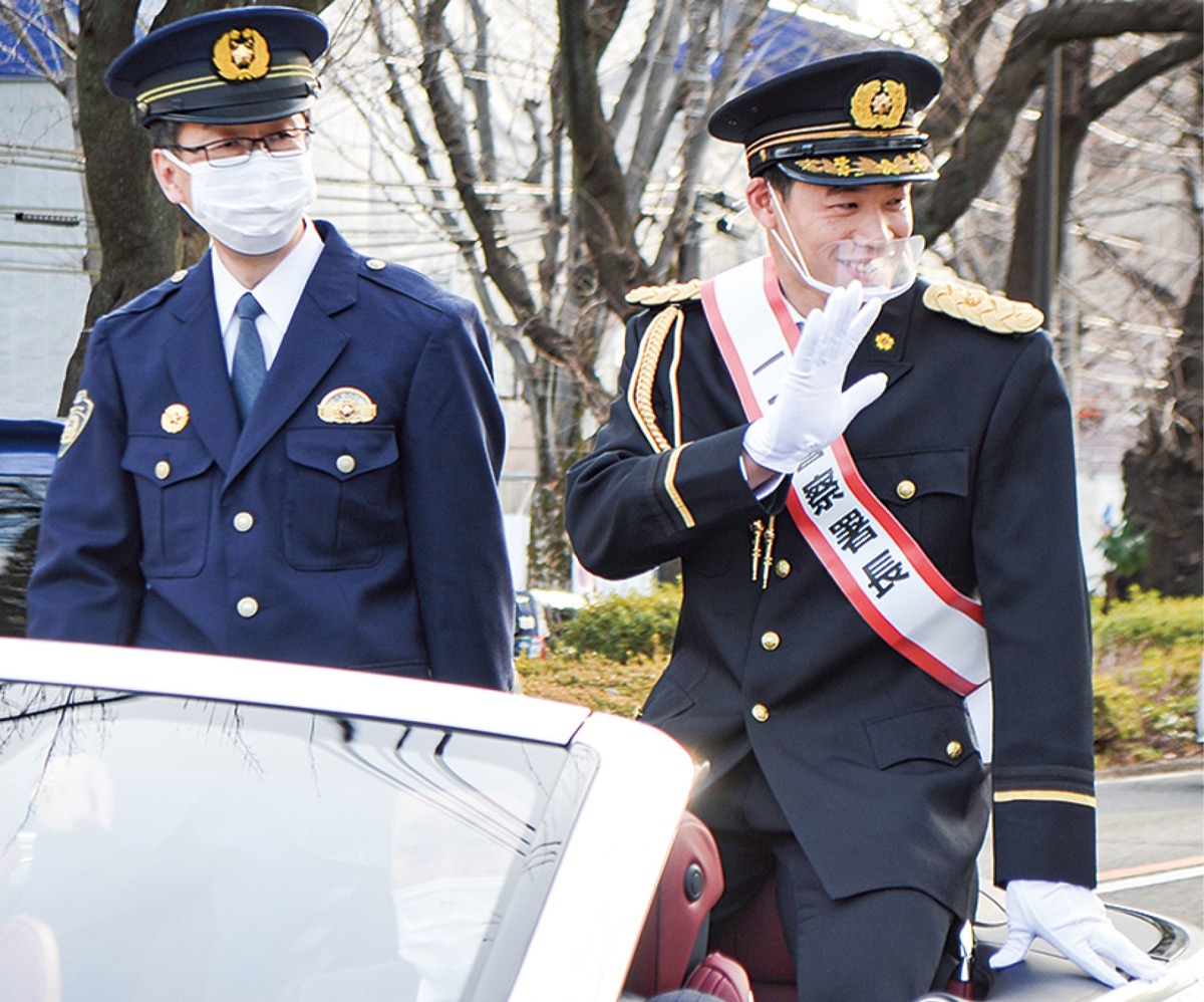 昨年、日本一の原動力にもなった、地元プロ野球選手が制服姿で凱旋――。千代田出身で、東京ヤクルトスワローズ外野手の塩見泰隆さんが9日、相模原警察署の一日署長を務めた。「110番の日」キャンペーンで参加したもので、パレードも行われ、多くの市民が沿道から声援を送った。