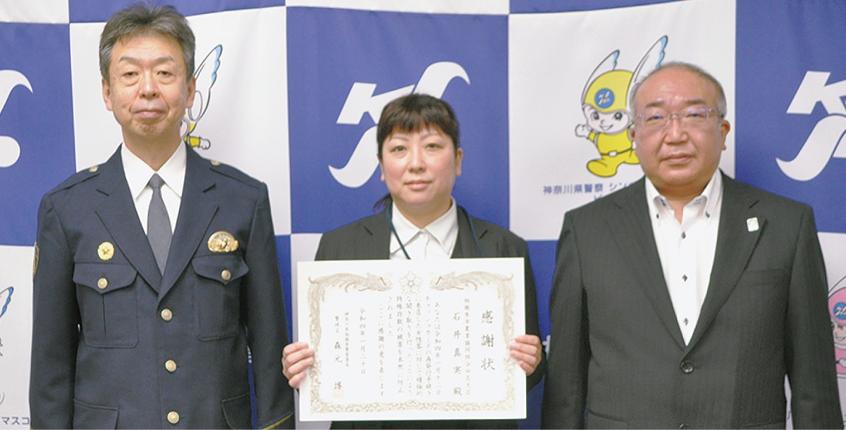 キャッシュカードをだまし取る手口の特殊詐欺を未然に防止したとして、相模原警察署(森元博署長)は1月20日、相模原市農業協同組合田名支店に勤める石井真実さんに感謝状を贈呈した。