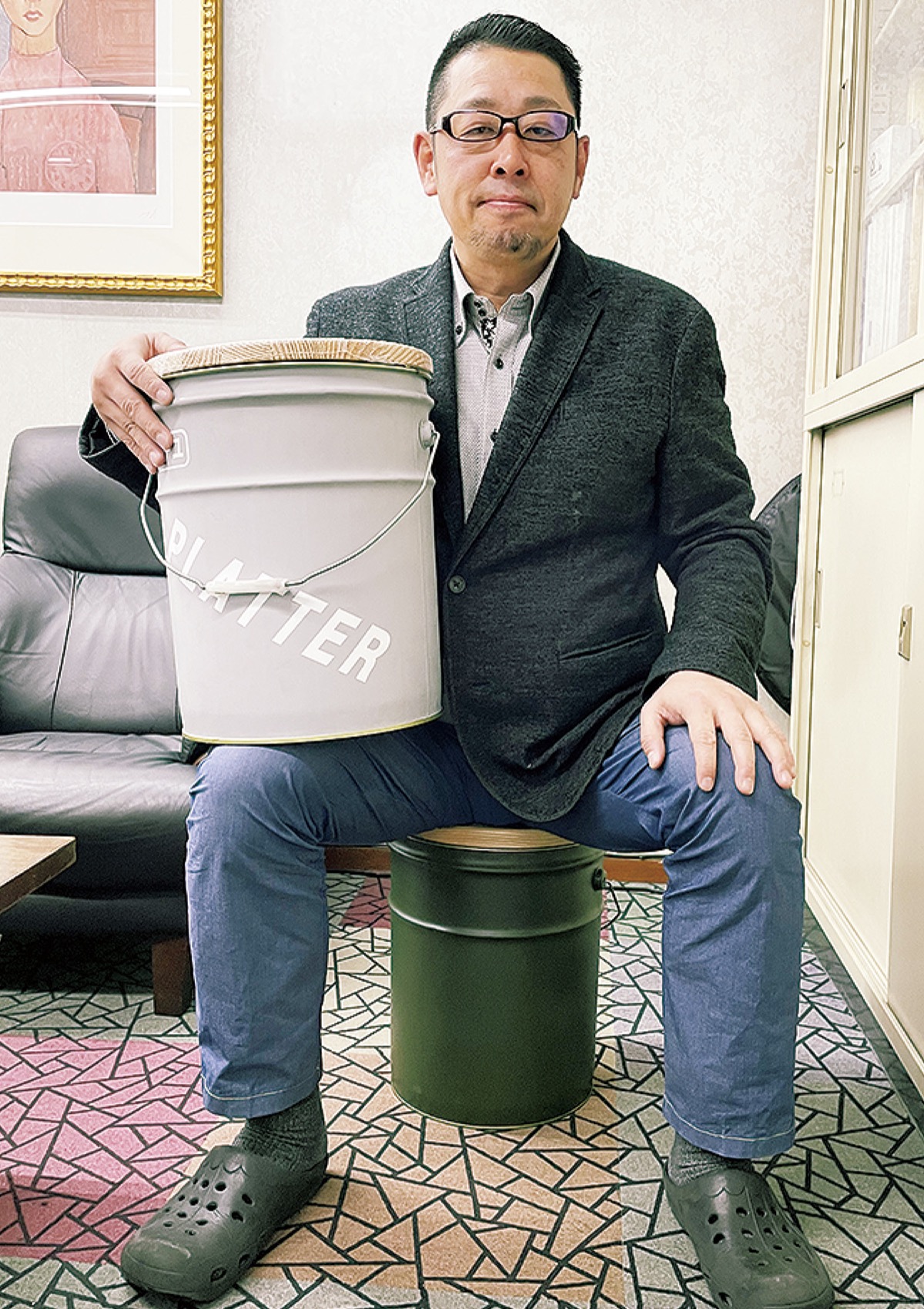 同社はこれまでにも災害用トイレや非常用のバッテリーなど、有事への備えに適した商品開発に取り組んできた。今回のいす缶の開発では「SDGs(持続可能な開発目標)」に着目。機器の点検に使われた後は廃棄となっていたオイル缶を、フォークリフトの塗料を使って同社の工場内で塗装し製品化した。横江社長は「環境やSDGsに貢献するために、何かに再利用できないかと模索していた」と、開発の経緯を話す。