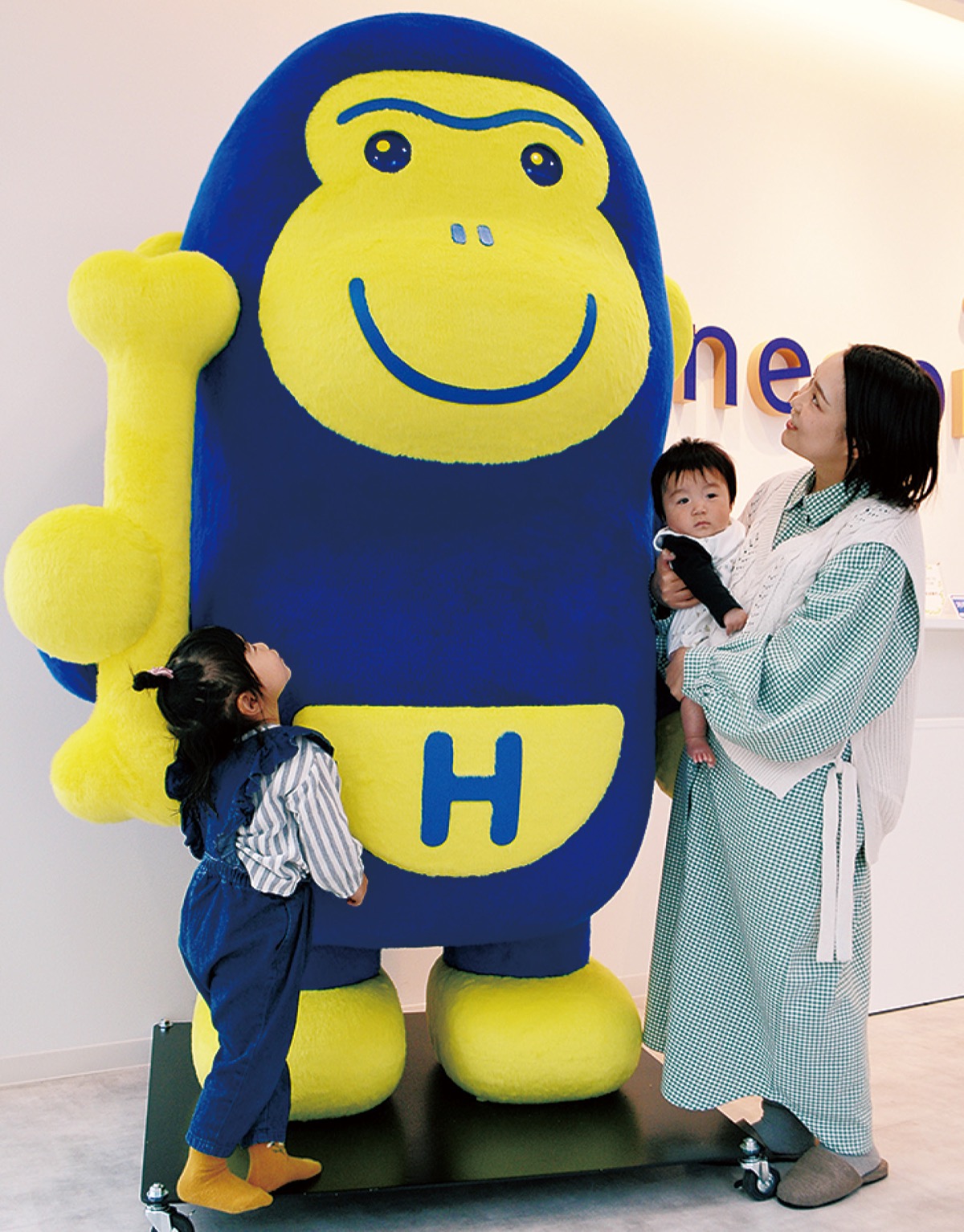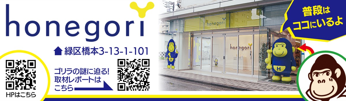 青と黄色の配色がひと際目立つゴリラが立っていたのは、壁に「honegori」の文字とゴリラのイラストが施されたガラス張りの建物の前。相模原市で創業し、関東を中心に鍼灸接骨院を32店舗展開するほねごり(阿部公太郎代表取締役)の新本社だ。巨大ゴリラを設置した理由を「街のアイコンのような、ちょっとした待ち合わせ場所として名物になってくれれば」と担当者。「地元を盛り上げたい」という思いを胸に、相模原に根差した活動を展開していく構えだ。