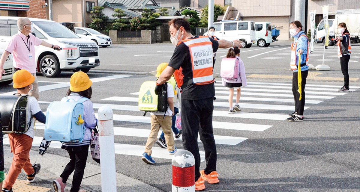 新年度を迎えた4月。田名小学校(田名)の通学路では、社会福祉法人相模福祉村(赤間源太郎理事長)の職員による、恒例の朝の見守り活動が行われている。