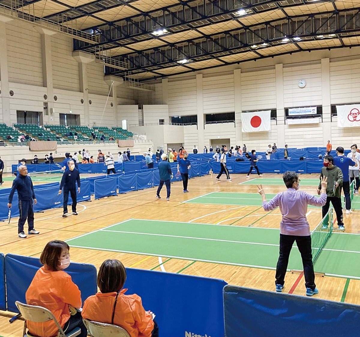 神奈川県でこの秋、初開催される「ねんりんピックかながわ2022」(第34回全国健康福祉祭 神奈川・横浜・川崎・相模原大会)の周知拡大と機運醸成を図ろうと5月3日、会場となる相模原ギオンアリーナ(南区麻溝台)でリハーサル大会が実施された。ねんりんピック相模原大会で競技されるバウンドテニスの団体ダブルスとチーム別対抗戦を実際に行い、本大会の流れを確認した。
