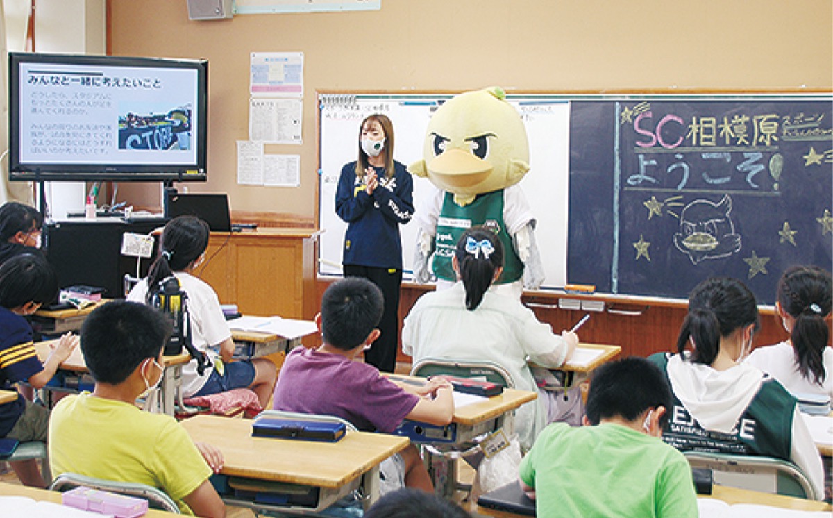 同校5年生が相模原や日本の文化を学ぶ「総合的な学習」の一環で、各組それぞれ地元の祭りや公園、伝統工芸の畳などを題材とする中、3組は地域のスポーツ文化の深掘りを計画。調べていく中でHTTの存在を知り、サッカーチームのSC相模原や市スポーツ推進課の職員を招いた。