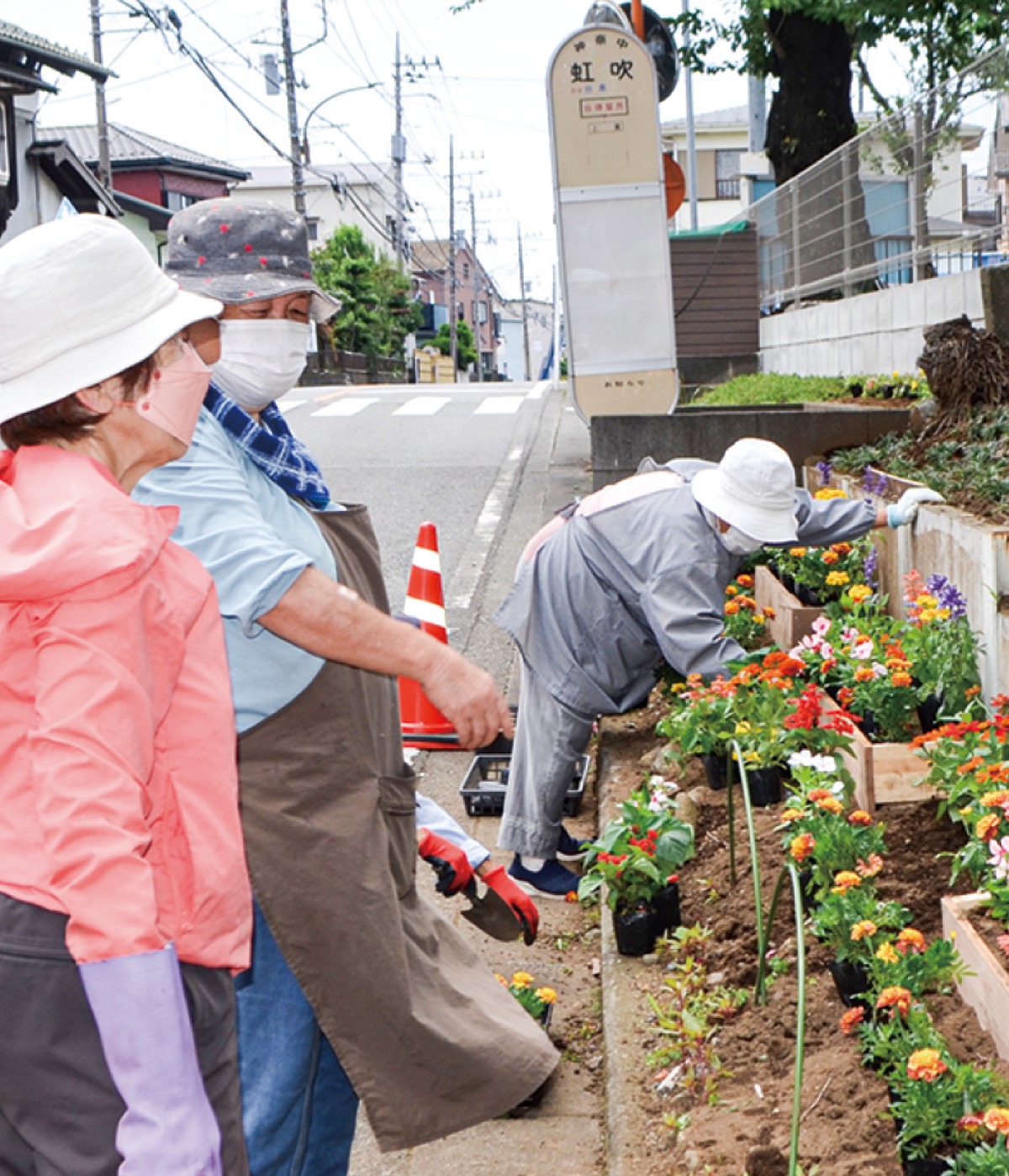 同会はこれまで、自費で花苗を購入し定期的に同花壇を整備してきたが、今回は初めて(公財)相模原市まち・みどり公社から花苗の提供を受け、実施した。