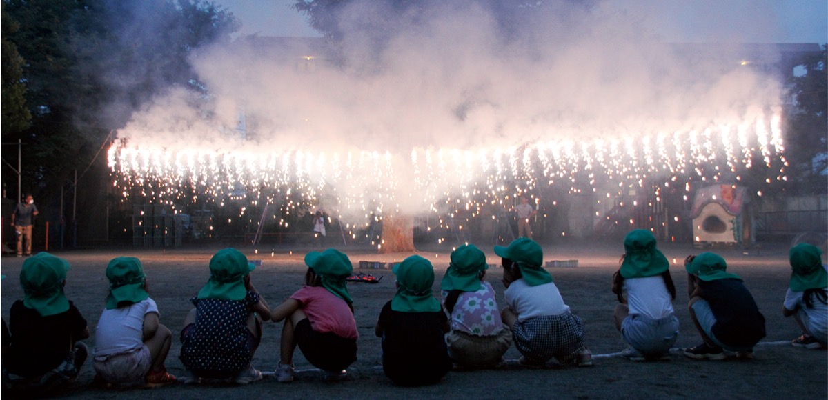 ナイアガラ花火は20日に同園で行われた夕涼み会でも実施。佐藤理事長は「暗くて園児の顔は見えませんが、大きな歓声が聞こえるので準備の甲斐がありました」と笑顔で感想を話した。