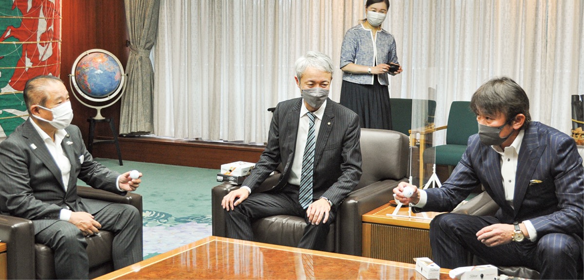 ウイッツグループホールディングス(南区上鶴間)などによるウイッツグループが7月15日、相模原市役所を訪れウクライナ避難民支援を目的とした寄付をした。6月に市内で開催したゴルフコンペでの寄付金15万円と同グループからの15万円の合計30万円を、本村賢太郎市長に手渡した。