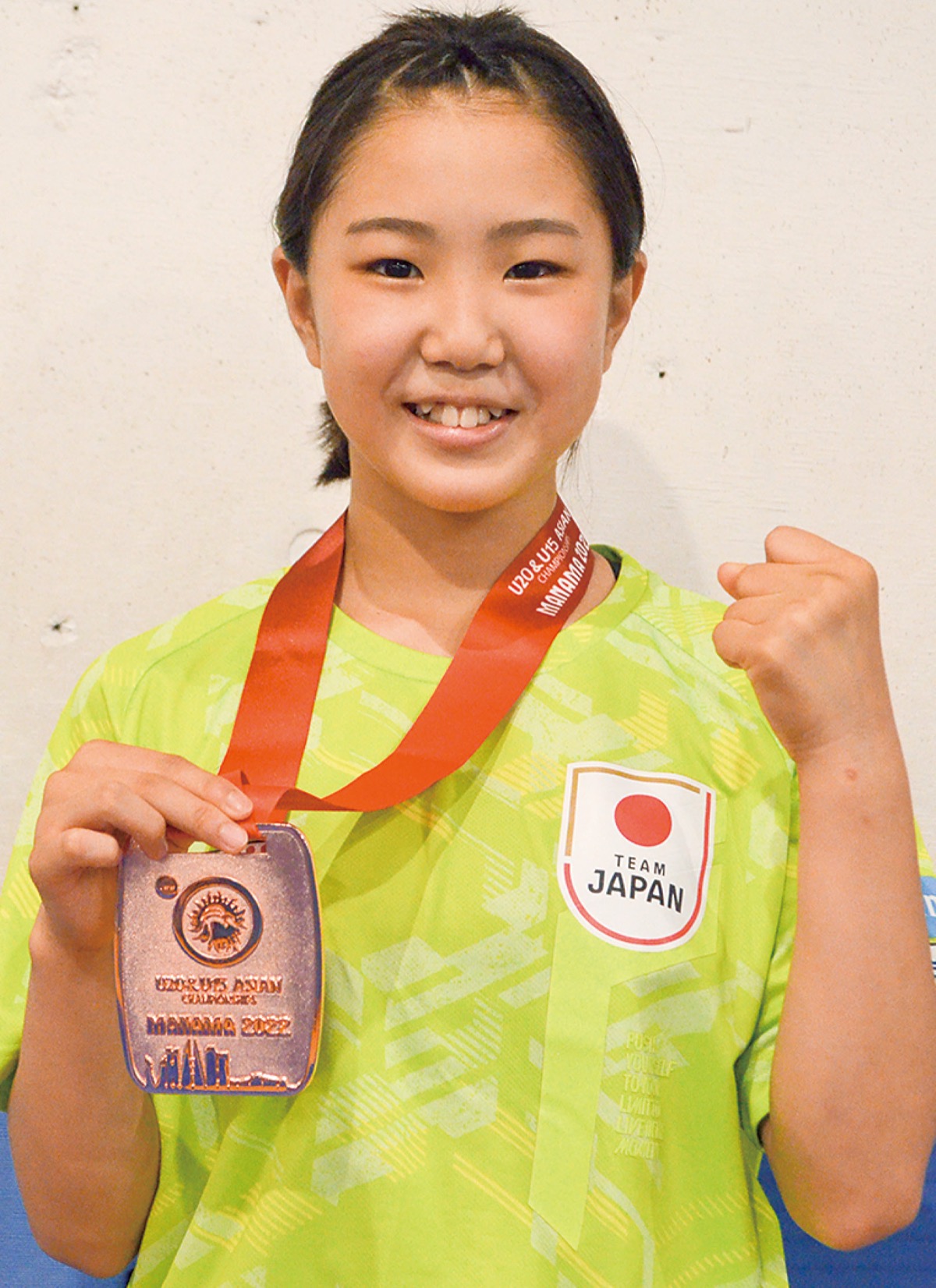 清新中学2年で、メイプル1990スポーツスタジオ(千代田/山内仁代表)のキッズレスリングチーム「FIRE BOYS」に所属する小原心(ここ)花(は)選手が7月3日、バーレーンで開かれたU15アジア選手権39kg級に日本代表として出場し、銅メダルに輝いた。