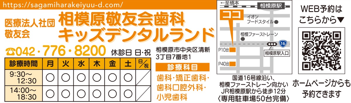 医療法人社団敬友会が運営する相模原敬友会歯科キッズデンタルランドは、7月1日に開院した子どものための歯科医院。国道16号沿いの相模ファーストレーン向かいの立地(2階)で駐車場50台を完備している。