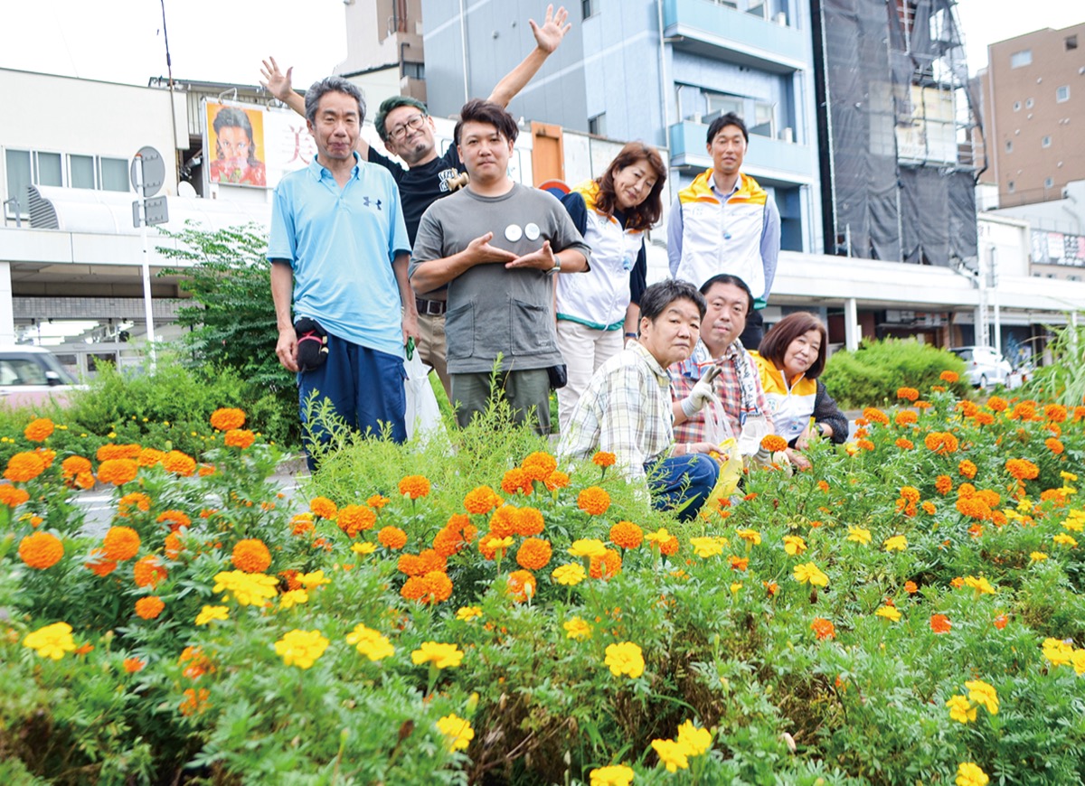 「夏の暑い内は作業が大変だったの」「殺風景で何もなかったところに花が咲いてよかった」と、満開の花々を前に利用者からは笑顔がこぼれる。作業中に通りがかった人からねぎらいや感謝の言葉をかけられ、交流が生まれることも。施設長の山田龍さんは「利用者さんのやりがいや自信につながっていて、良い効果が生まれている」と話した。