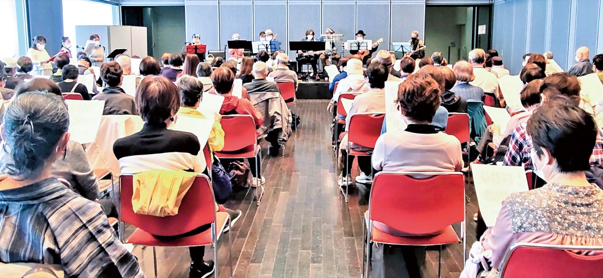 とことん懐メロ歌謡楽団の生演奏で唱歌や抒情歌、歌謡曲などをみんなで歌う。「人生100年時代を楽しく迎えましょう」と担当者。また同楽団では現在、懐メロ好きなマンドリン、ギター、アコーディオン奏者と男性ボーカルを募集中。問い合わせは同楽団・深澤さん【携帯電話】090・7947・1174。