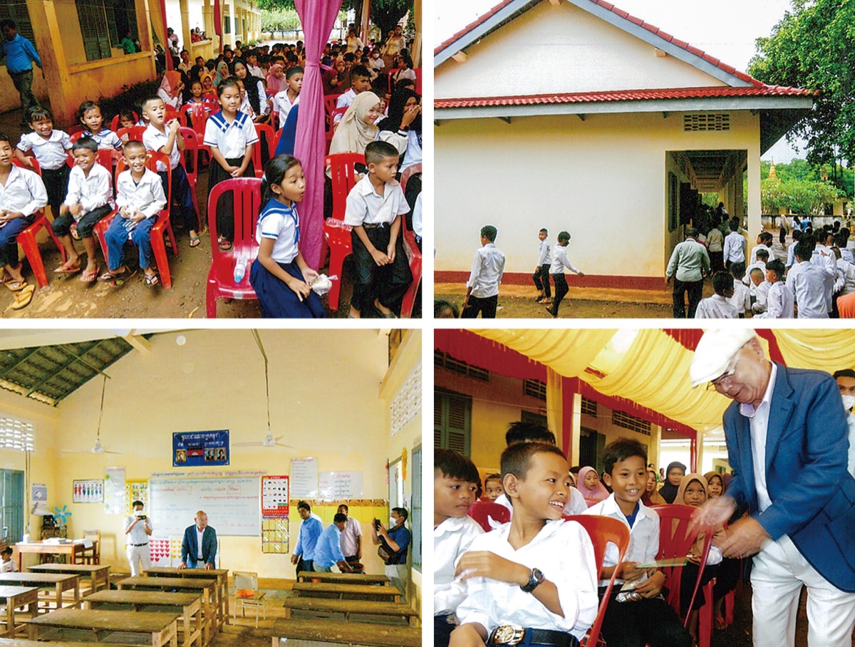 カンボジアのチョロイコール小学校で9月6日、寄付により再建された新校舎の贈呈式が開かれた。校舎の寄贈主で、緑区橋本台にある電子・医療機器メーカー「マーク電子」の相談役を務める村山忠雄さん(80)は、式に参加するため現地を訪れ、およそ400人の児童や教員から歓迎を受けた。