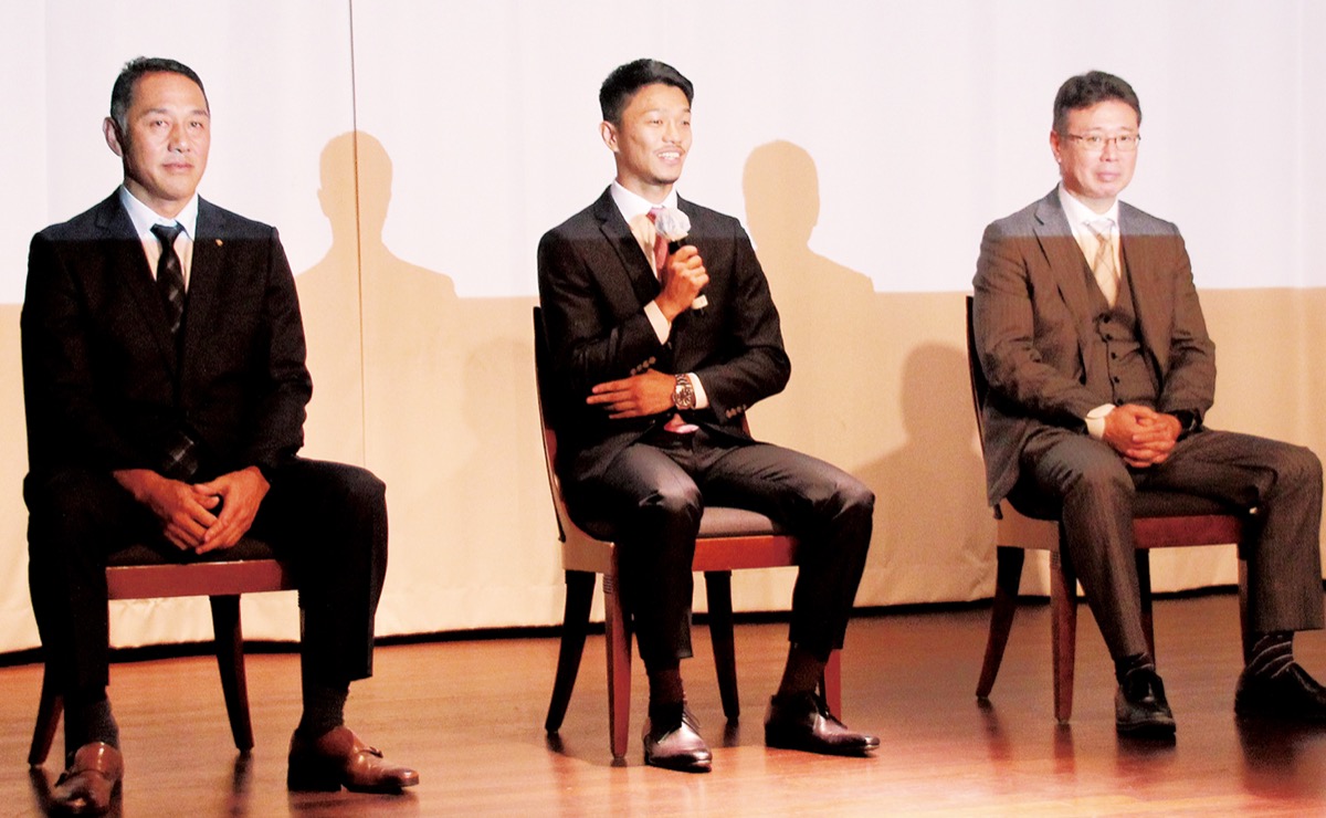 発足式はコロナ下のため入場を50人に制限して開催された。冒頭、後援会会長に就任した沼尾一喜さん(沼尾硝子代表/緑区上九沢)が、自身もボクシングで高みを目指した過去を語り「夢や希望、覚悟を持って突き進む中谷潤人なら、私が見られなかったステージに連れていってくれる。今日この会場にいる皆さんの声が潤人の力になる」と支援者に呼びかけた。