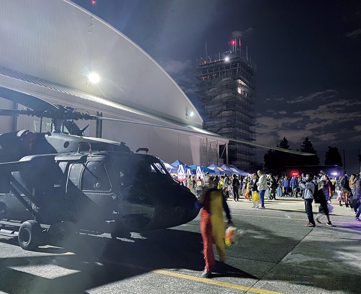 巨大なヘリコプターの格納庫(ハンガー)をお化け屋敷に仕立てた「ホーンテッドハンガー」では米軍人、軍属とその家族がホラー映画に登場するような衣装に身を包み、来場者を驚かせていた。