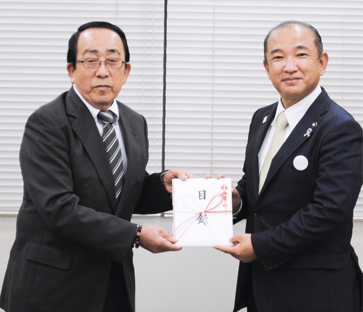 市内の保存樹林・樹木保全事業など緑化推進を図る事業の財源として設置される「みどりのまちづくり基金」。同組合が同基金に寄付を行うのは今年で30回目となる。
