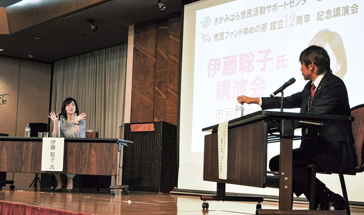 公設民営施設「さがみはら市民活動サポートセンター」の設立20周年、および市民ファンド「ゆめの芽」の12周年を記念した公開市民講演会が11月23日、けやき会館(富士見)で行われた。市民活動に係るおよそ100人の来場があり、「市民の力」の可能性を語る講師の話に熱心に耳を傾けるなど、充実した時間を過ごしていた。