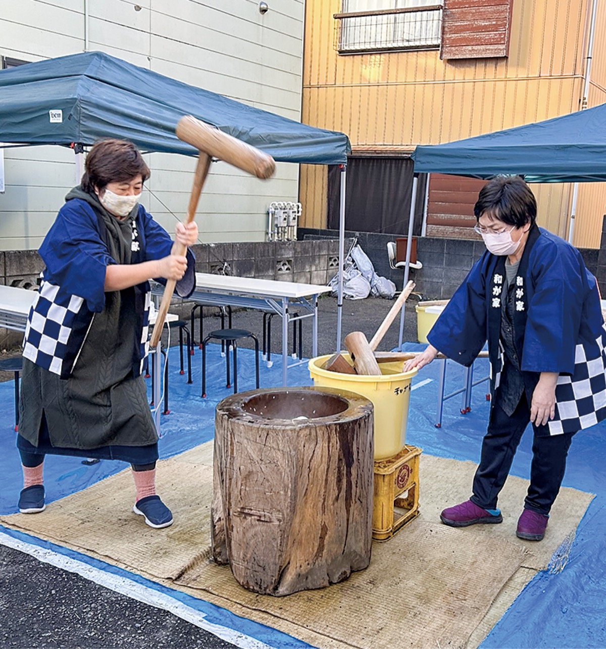 就労継続支援B型事業所「我が家」(中央区中央/守屋みか子代表)で昨年12月27日・28日、餅つき大会が行われた。