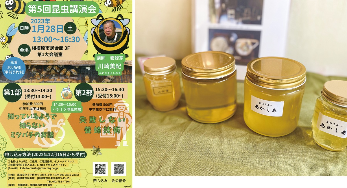 三宅さんは「ネットやユーチューブではわからない話を聞くことができる。蜂蜜に興味がある子どもたち、養蜂をしてみたい大人の方にぜひ参加していただきたい」と呼びかける。同会は2019年から昆虫をテーマにした講演会を開催しており今回で5回目となる。