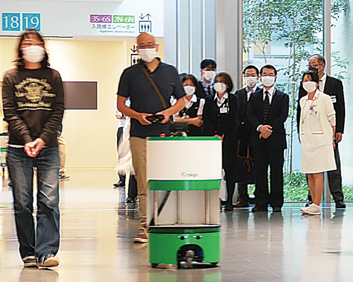 実験当日は、配膳を想定して走行実験が行われた。実験前には井關(いせき)治和病院長が「医療現場でも人手が足りないところなど、ロボットを使うのは必要になってくると思う。どのように使えるのか検討できれば、大いに期待したい」とあいさつし期待を寄せた。試走が始まると、看護師や病院関係者が見守るなか、ロボットは点字ブロックなどを乗り越えフロアを一周していった。