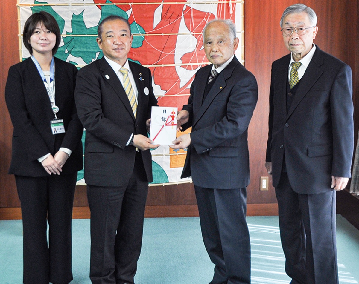 上溝地区社会福祉協議会(磯隆司会長)は2月16日、相模原市役所を訪れ、相模原市国際化推進委員会が行う「ウクライナ避難民支援募金」に10万円を寄付した。