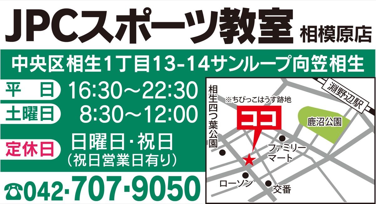 3歳から小学生までの子どもを中心に、体と心を鍛えるトレーニングを行う「JPCスポーツ教室相模原店」は、3月26日(日)と4月16日(日)に内覧会を実施する。