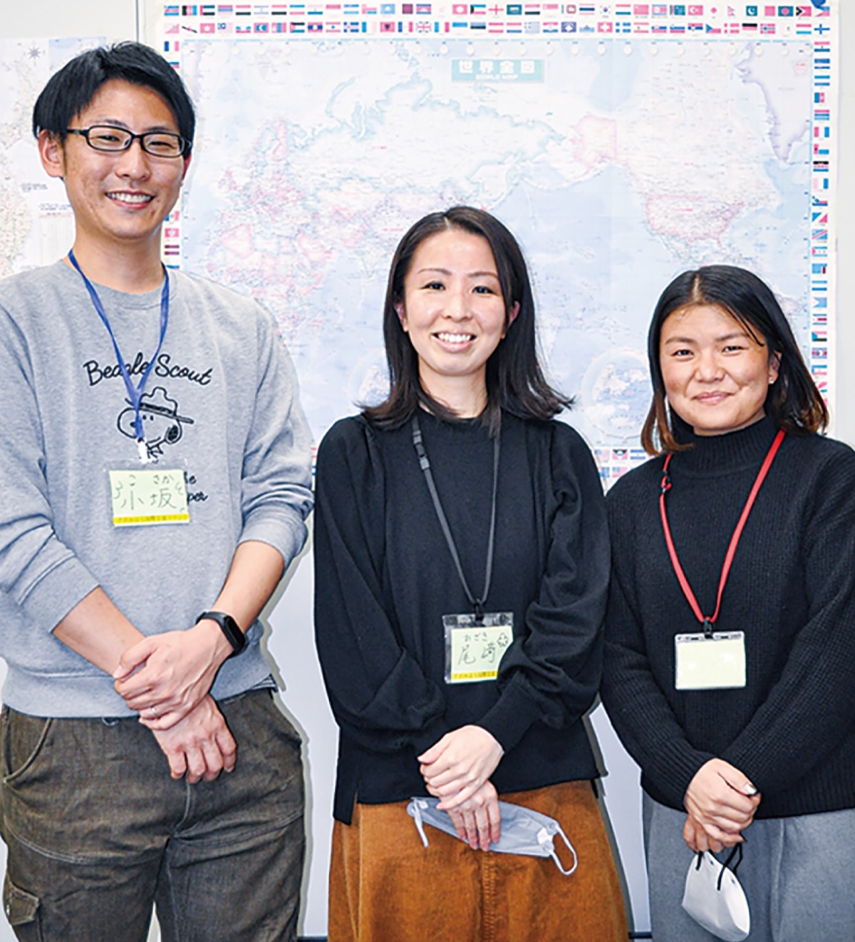 この日は男女3人の従業員が勤務後、学習教室に足を運び支援に加わった。「時には勉強の内容が難しく、一緒に教科書を読んで学び直すこともあります。それも良い機会になっています」。その1人、総務課の三輪ゆりさんはこの2カ月あまりを振り返り感想を話す。三輪さんは社内でのボランティア募集に対し「子どもと接するのが好き」であったのと「仕事以外の経験もしたい」との動機で参加を決めた。教室では現在、宿題や自習用ドリルの手伝いをし、丸つけをしたり一緒に間違えたところを解いたりする。「ボランティアの方もシニアから大学生と幅広く、そういった方と関わることで自分たちの視野を広げることができる貴重な時間になっています」。三輪さんをはじめ9人の社員がボランティアに登録している。