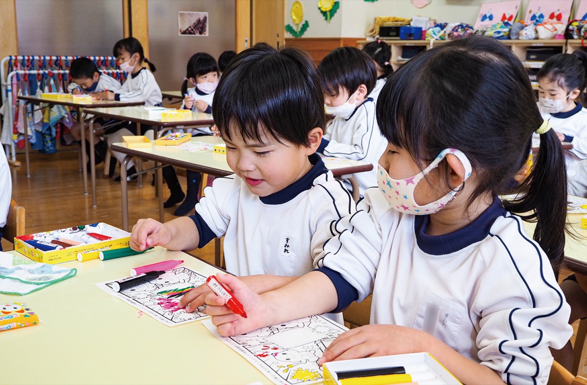 子どもたちによるぬり絵1枚につき20円を寄付するというもので、3月10日には南区古淵の相模すぎのこ幼稚園(日高倫明理事長)の園児らが、ぬり絵をして募金に「協力」した。
