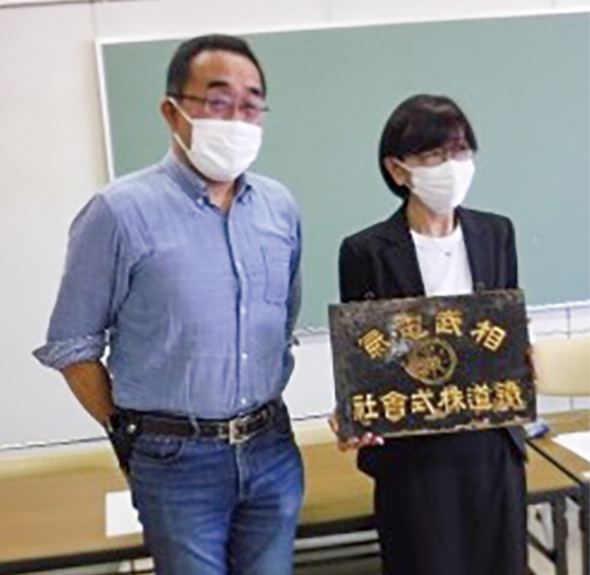 懇談会には、上溝出身で同鉄道の最後の社長となった人物を祖父に持つ佐藤和夫さんも参加。佐藤さんは、敷設工事の図面や会社名が書かれた看板を持参し、鉄道の歴史を説明した。青井さんは「相武電気鉄道とゆかりがあり、詳しい方とお会いできて有意義な時間になった」と話した。根岸館長は「この地域にこうした歴史があったということを勉強することは素晴らしいこと。まちづくりの一環として同鉄道に関する催しを企画していきたい。その際には、青井さんにもお越しいただければ」と話した。