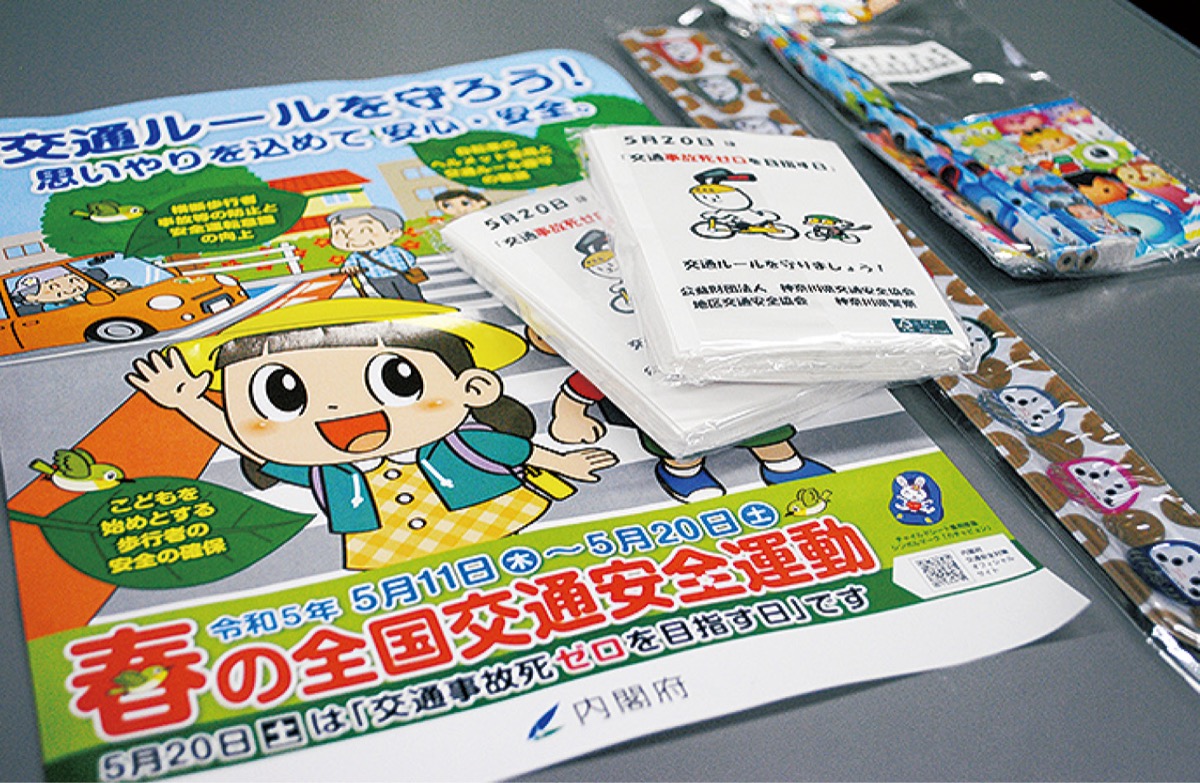 初日の11日には、警察署前で秋本剛署長や同協会会員、ボランティアなど約30人が参加し、キャンペーンを行った。あいにくの雨で短時間の活動となったが、啓発チラシのほか、腕に巻く反射バンドやティッシュ、文房具などを配り、通行人や自転車利用者に交通マナーの向上や交通ルールの順守を呼びかけた。