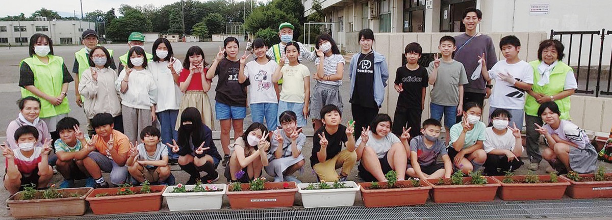 横山地区青少年健全育成協議会(北川春恵会長)は6月21日と22日、横山小学校と清新中学校で、それぞれ花植えを行った。
