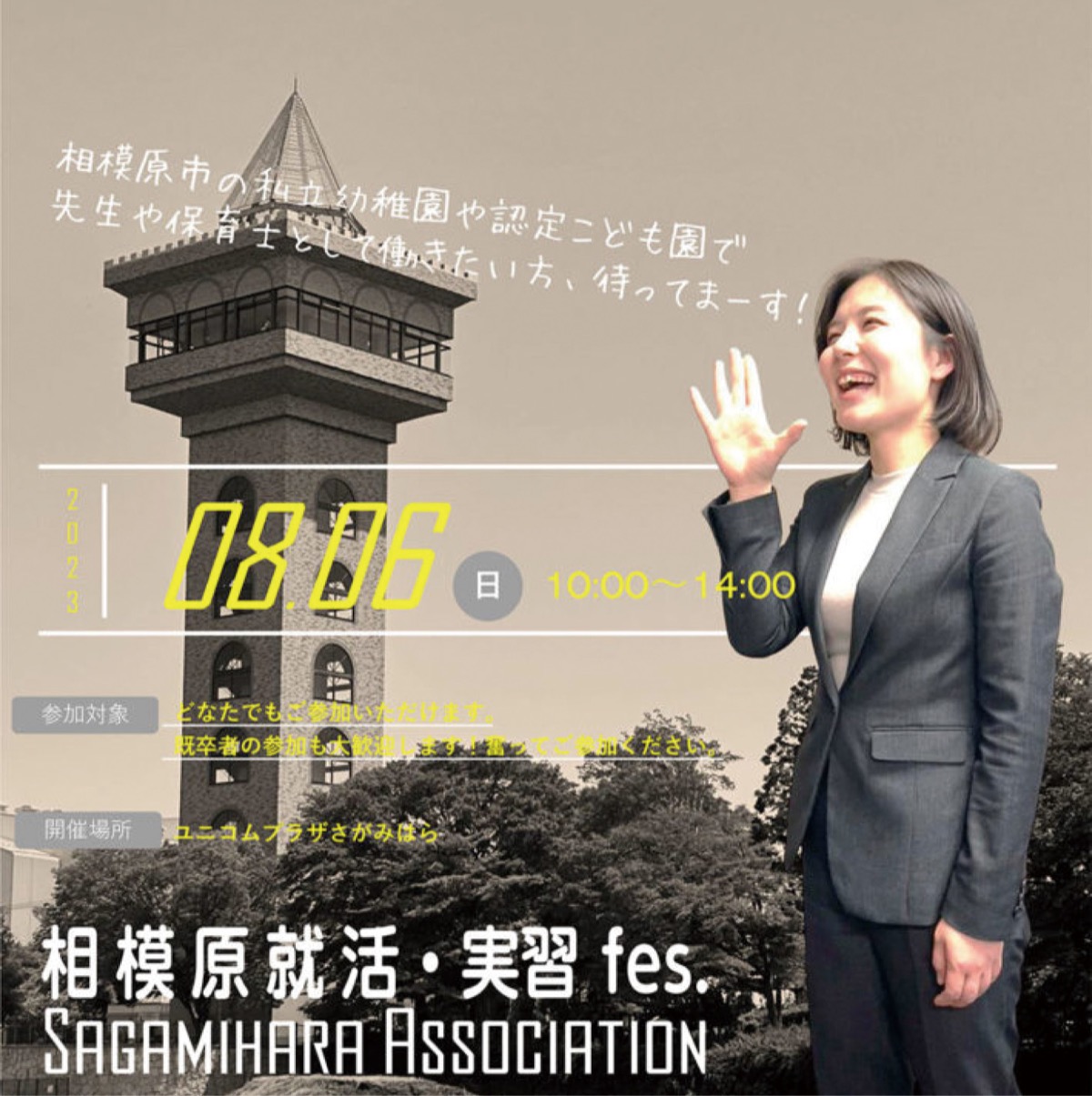 (一社)相模原市幼稚園・認定こども園協会は8月6日(日)、ユニコムプラザさがみはら(相模大野駅徒歩3分・ボーノ相模大野サウスモール3階)で「就活・実習フェス」を開催する。午前10時から午後2時まで(予定)。入場無料。