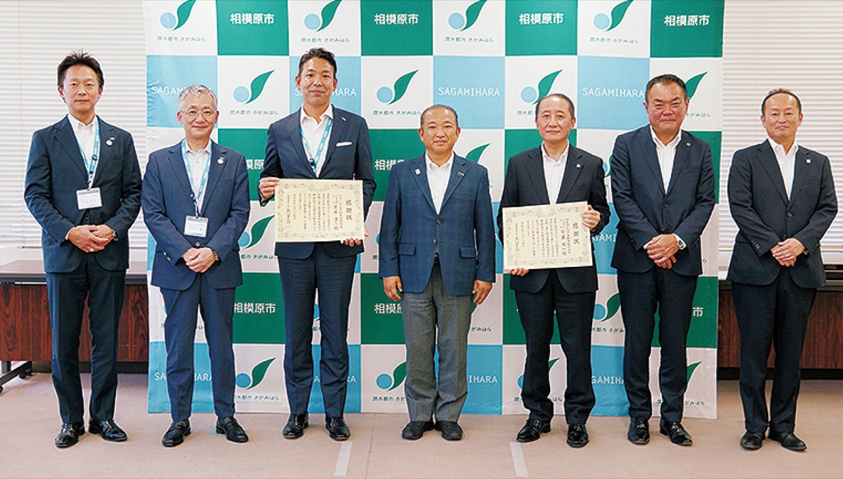 コロナ禍で感染患者の搬送車両として「飛沫循環抑制車両(陰圧車)」を無償で貸与したことに対し、相模原市は7月24 日、「神奈川トヨタ自動車株式会社」と「ウエインズトヨタ神奈川株式会社」に感謝状を贈った。