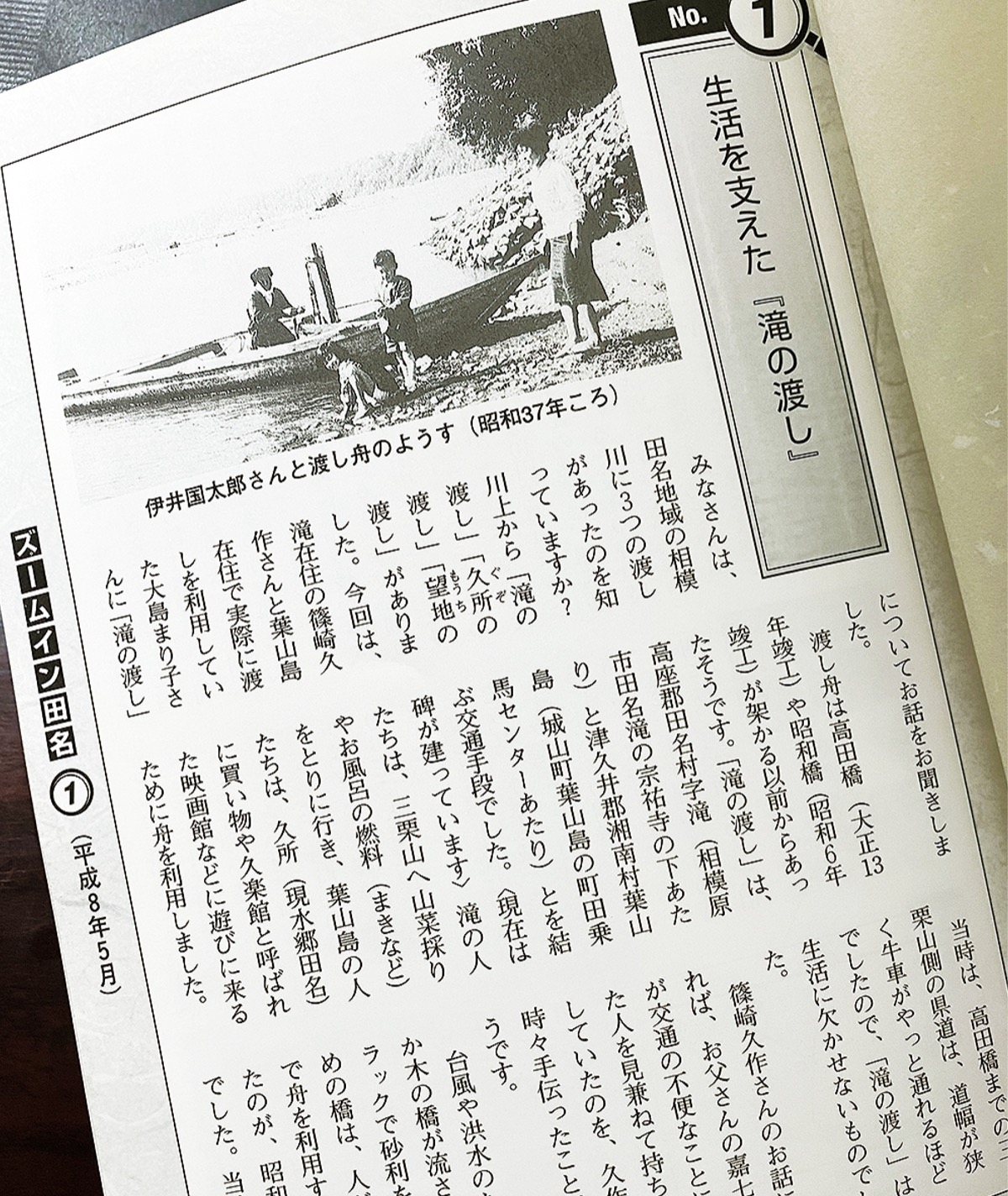 田名地域は相模川を中心におよそ1700年前に開拓されたと言われている。歴史が長いことから地域に独特の文化が根付いていた。ただ、高度経済成長期にかけて人口の増加や開発があったことで、守ってきたそれらが次第に消えてしまいそうになっていった。そのような中、1996年(平成8)、歴史のある地域の暮らしや文化を残していこうと「ズームイン田名」、そして「村の歳時記」という連載が始まった。いずれも地域住民や公民館の職員が編集を担当。「生活を支えた『滝の渡し』」「相模川のう飼い」「塩田にあった異人館」などといったタイトルで、地域「独特」の内容などを2カ月に1回のペースで掲載。ズームイン田名は2018年まで途切れたことはあったが、合計22年間にわたり75回の掲載を数えた。
