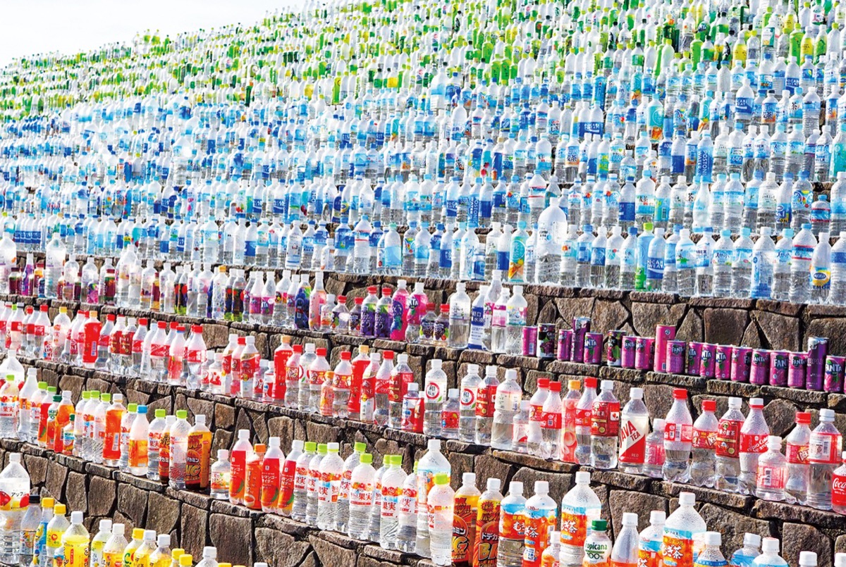 この日は午前9時に作業を開始。回収した廃棄物を水洗いした後、水を入れて重さを調整し、ラベルごとに色分けして石段に並べた。およそ6時間で並べた廃棄物は約6000本。写真を撮影すると、すぐに解体作業を行い、その日のうちに元の状態に戻された。