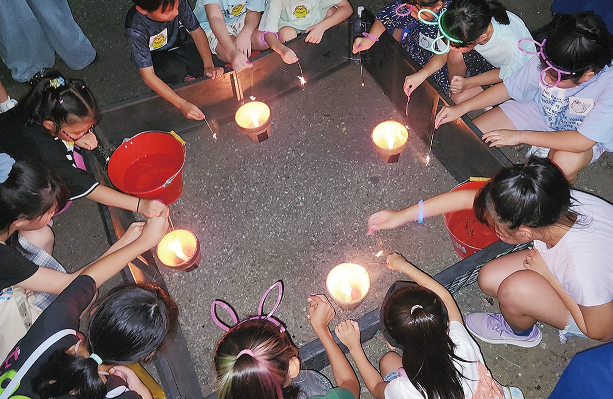 同花火大会は近隣の子どもたちに夏の思い出を作ってもらおうと開催し今年で3回目。コロナ禍の影響で4年ぶりの開催となった。