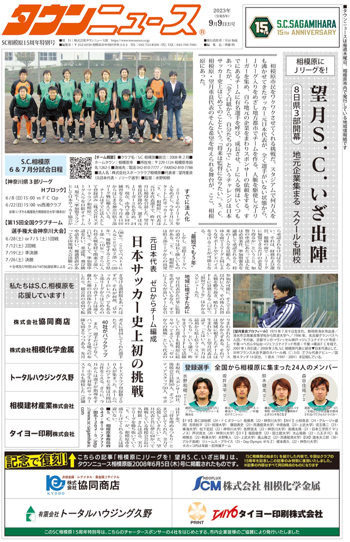 株式会社タウンニュース社は、SC相模原の創設15周年を記念し試合当日、2008年に発行したタウンニュース掲載の記事を「復刻」し、特別号として会場で配布する。配布場所はCゲート、Fゲート。時間は1時30分から3時まで、5時から6時までを予定(先着順)。