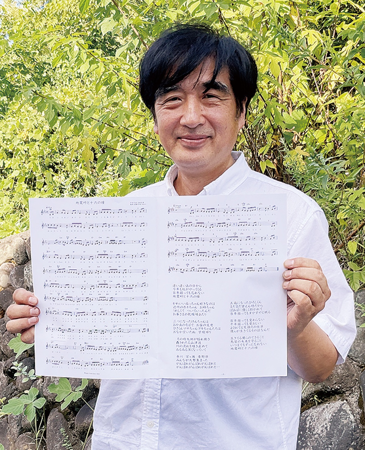 今年4月に依頼を受けた芳晴さんは制作を快諾。頭の中では明治時代につくられた歌謡曲「真白き富士の根」が浮かんだという。「江の島の海岸でボートが転覆して生徒12人が亡くなった事故について先生が作った歌で、それが真っ先に思い浮かんだ」と話す。さらに、7月には実際に地震峠を見学し、遺族と話をして詞や曲のイメージを膨らませていった。遺族らの要望を反映させた歌は8月上旬に完成した。