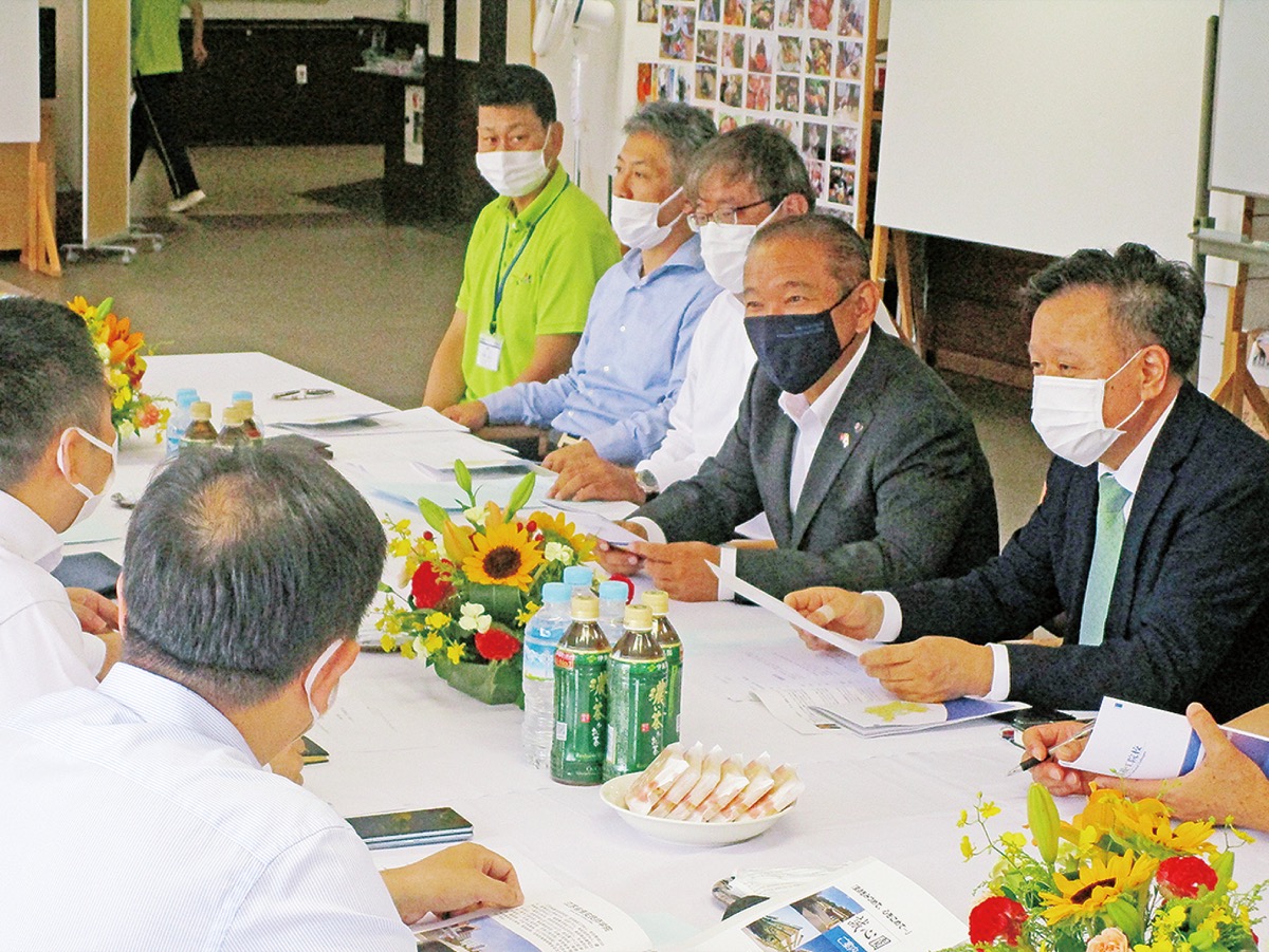訪問したのは、中国江蘇省人社庁副庁長のコ潮氏を団長とした人社庁職員、江蘇省内の技術学校の校長など8人。同園を運営する社会福祉法人三光会の松田圭助理事長が、日本の高齢者福祉の状況や施設における高齢者の生活実態、高齢者が快適な日常生活を送るための取り組み、個々のニーズに合わせたケアの提供などを説明した。その後、会合を行い、同園の施設の設備や介護技術、人材定着などについて積極的な情報交換が行れた。