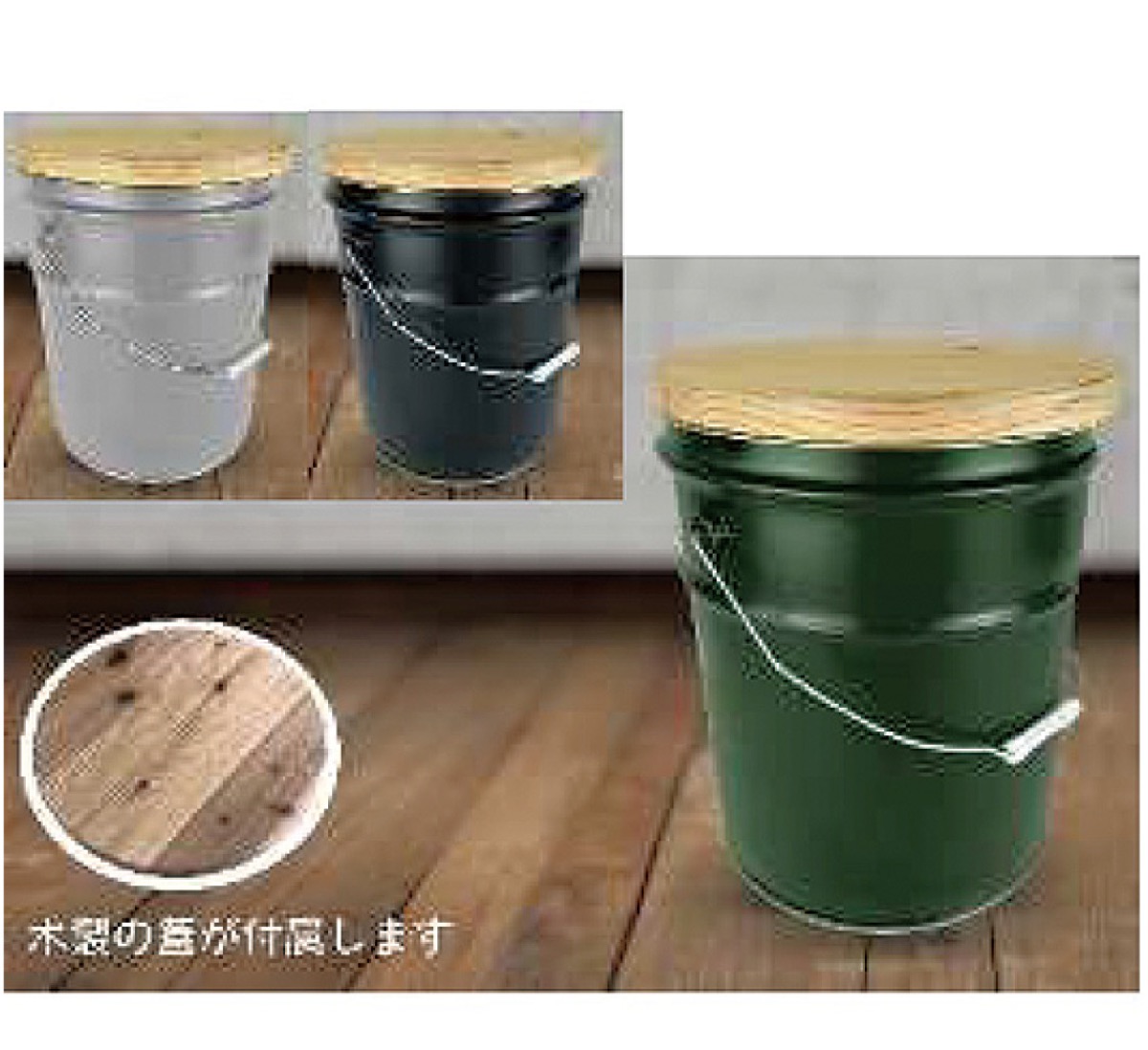 旭フォークリフトの「いす缶」はフォークリフトで使用したオイルの缶をペイントし、再利用したSDGs商品。椅子としてだけではなく、おもちゃ入れやゴミ箱としても活躍できるほか、アウトドア商品として薪入れなどにも使用できるという。