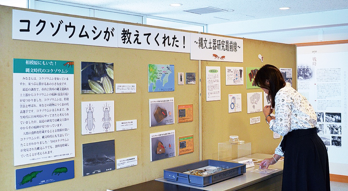 麻布大学いのちの博物館(淵野辺)で現在、ミニ展示「コクゾウムシが教えてくれた!〜縄文土器研究最前線〜」が開催されている=写真。