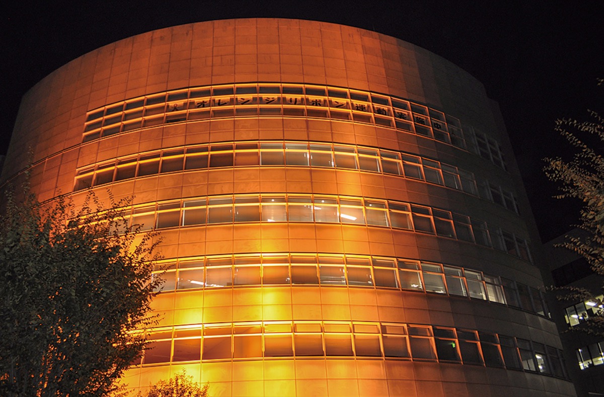 11月の「オレンジリボン・児童虐待防止推進キャンペーン」の一環として、相模原市総合保健医療センター「ウェルネスさがみはら」(富士見)がオレンジ色にライトアップされている。11月14日(火)までの午後5時〜9時。
