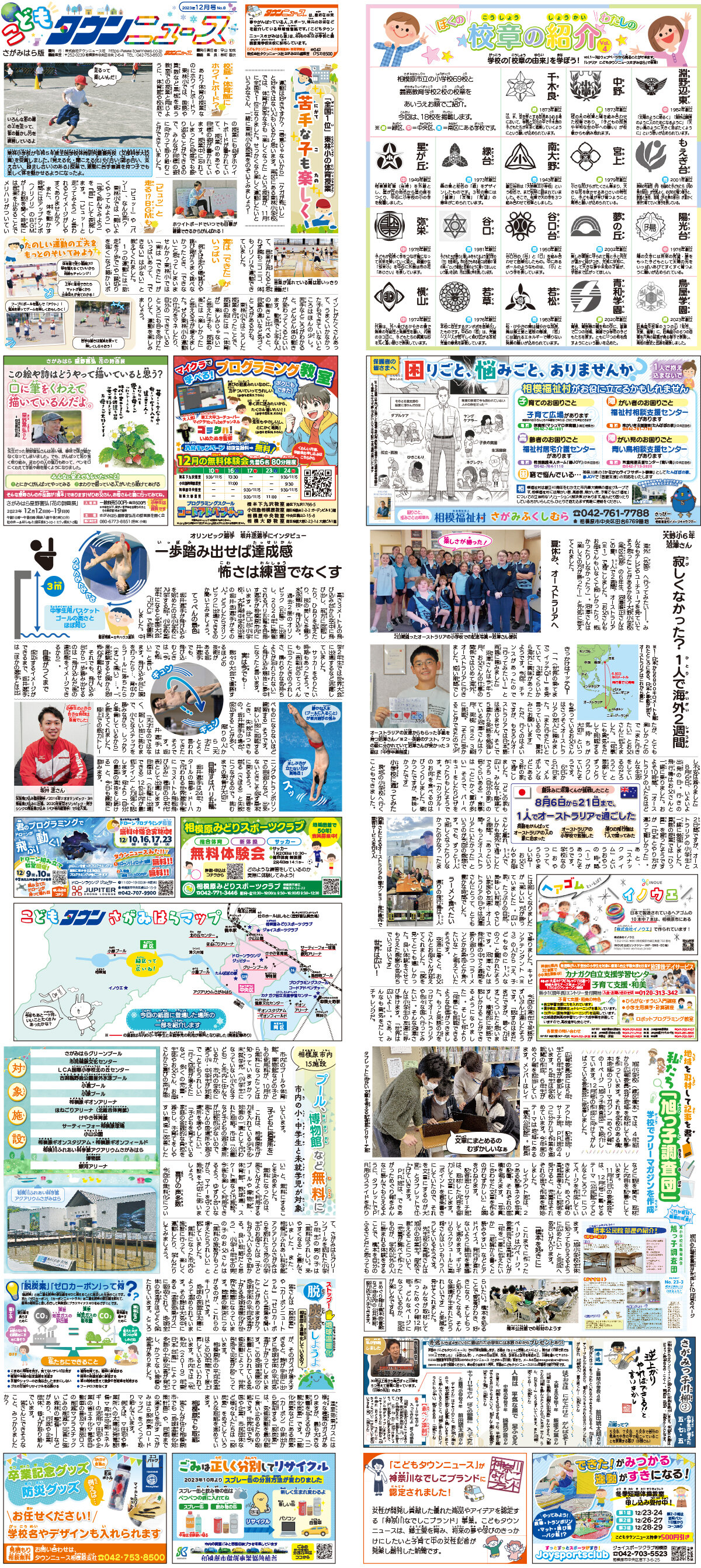 相模原市内の市立小学校・義務教育学校全71校で配布される「こどもタウンニュース さがみはら版」の2023年12月号を発行しました。
