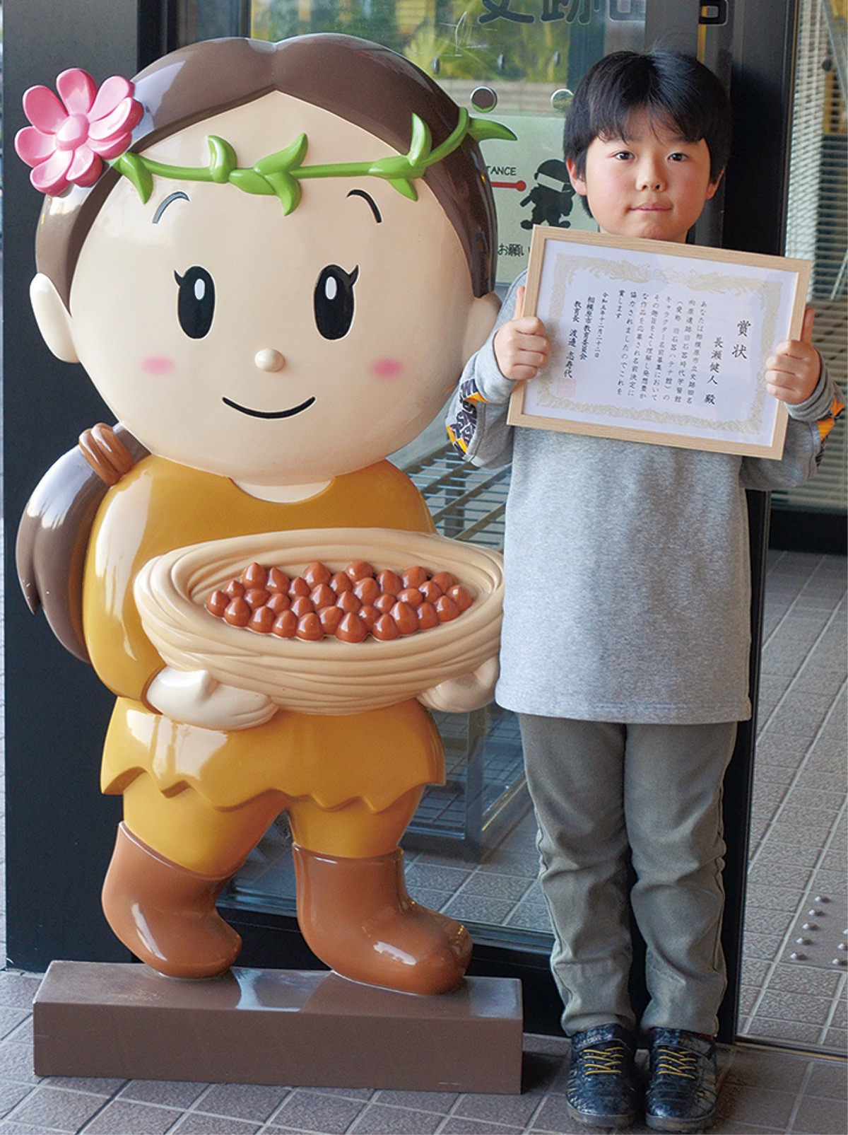 12月22日には同館で表彰式が行われ、長瀬さんと市教育委員会の渡邉志寿代教育長、名前選考委員会のメンバーらが出席した。渡邉教育長は「素敵な名前をありがとう」と感謝を述べ、「これからハテナ館とキャラクターがもっと広まっていったら」と期待を込めて賞状を手渡した。