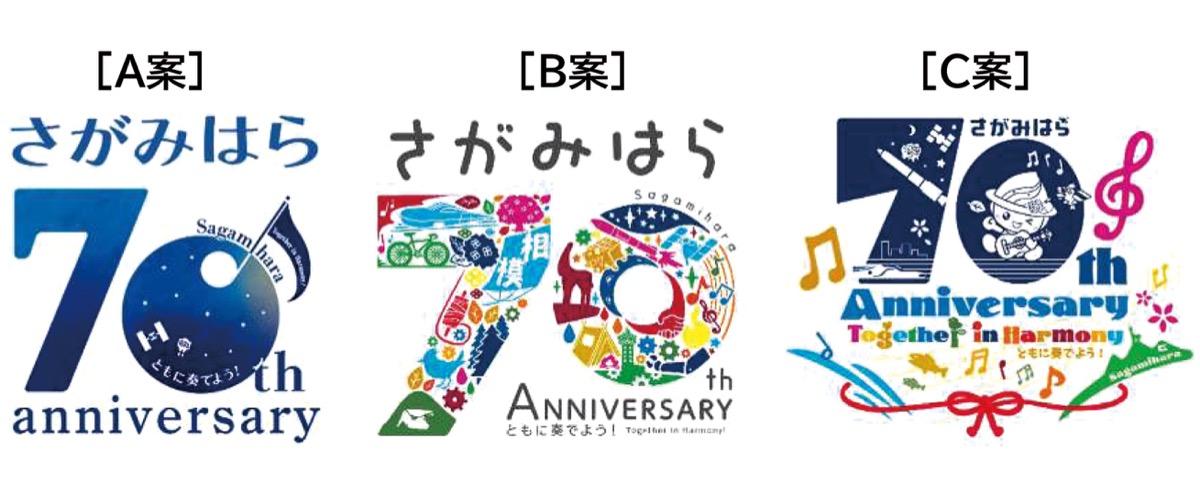 あなたの推しデザインはどれ--。相模原市は2月16日、市制70周年の記念ロゴマークの候補3案を公表し、市民からの投票を開始した。